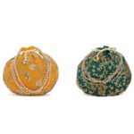 Home W_Bags Potlis PK 2 Combo – Designer Embroidered Potli Bag – Yellow & Green