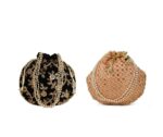 Combo of Beige & Black Color Designer Embroidered Potli Bag