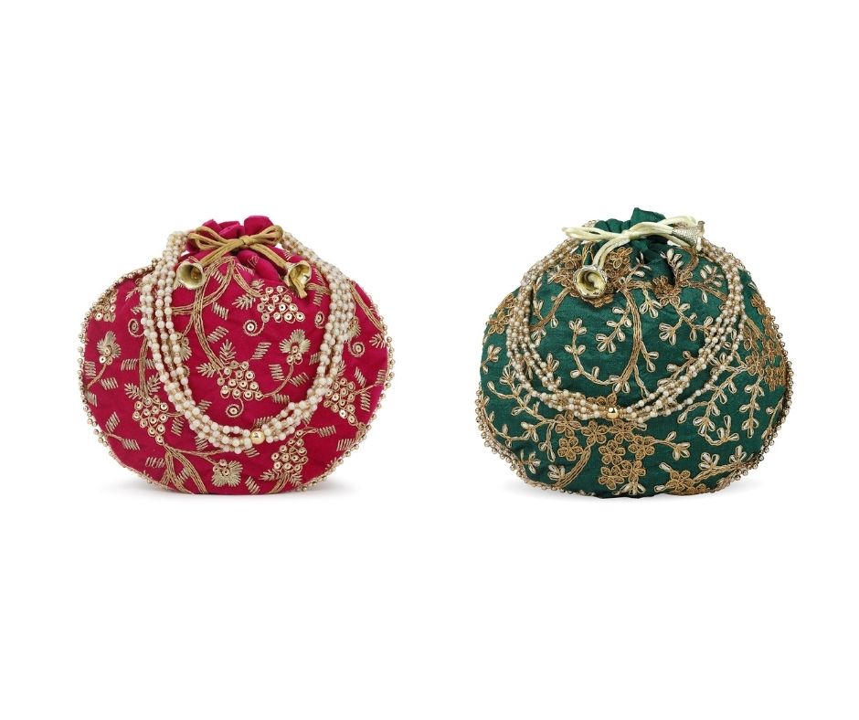 Designer Embroidered Potli Bag Combo- Pink & Green
