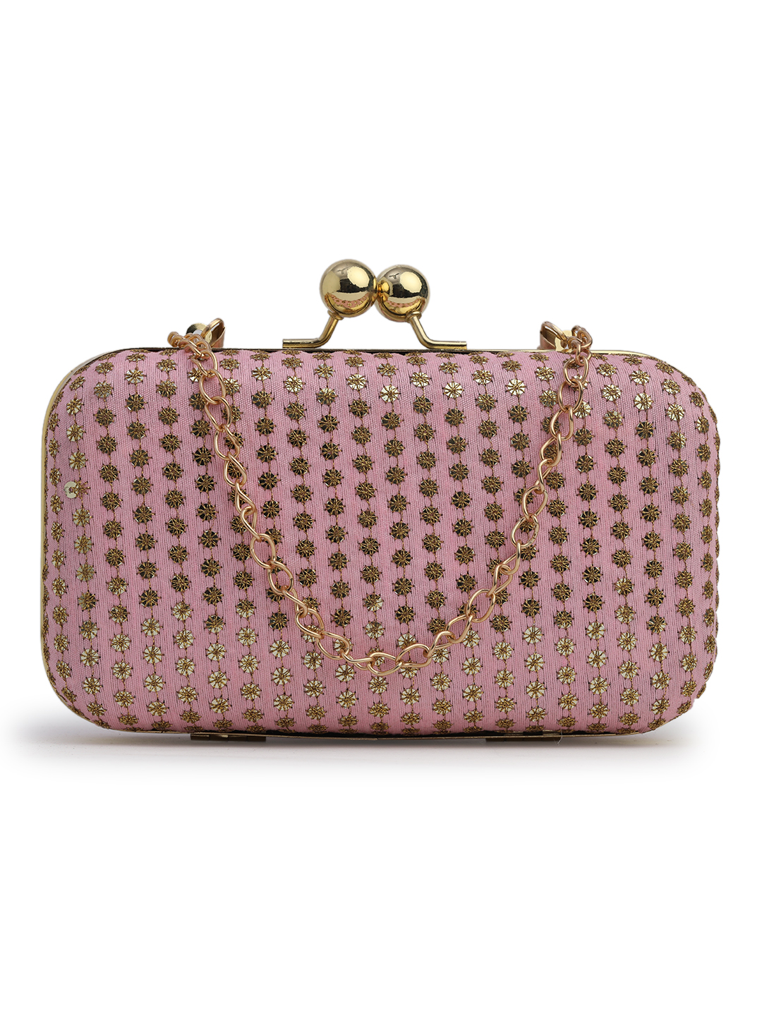 Home W_Bags Clutches Pink & Gold Embroidered Box Clutches For Girls and womens