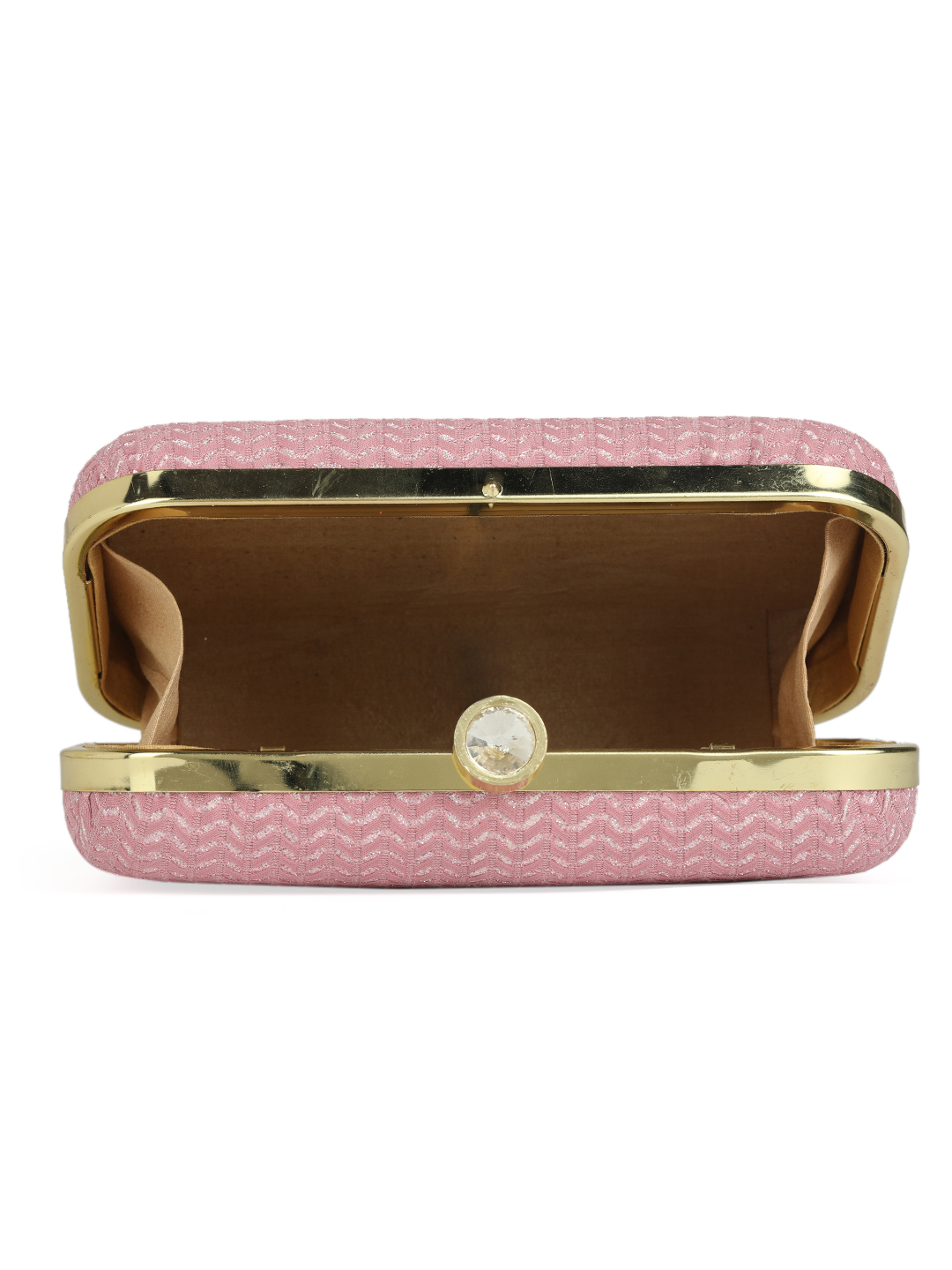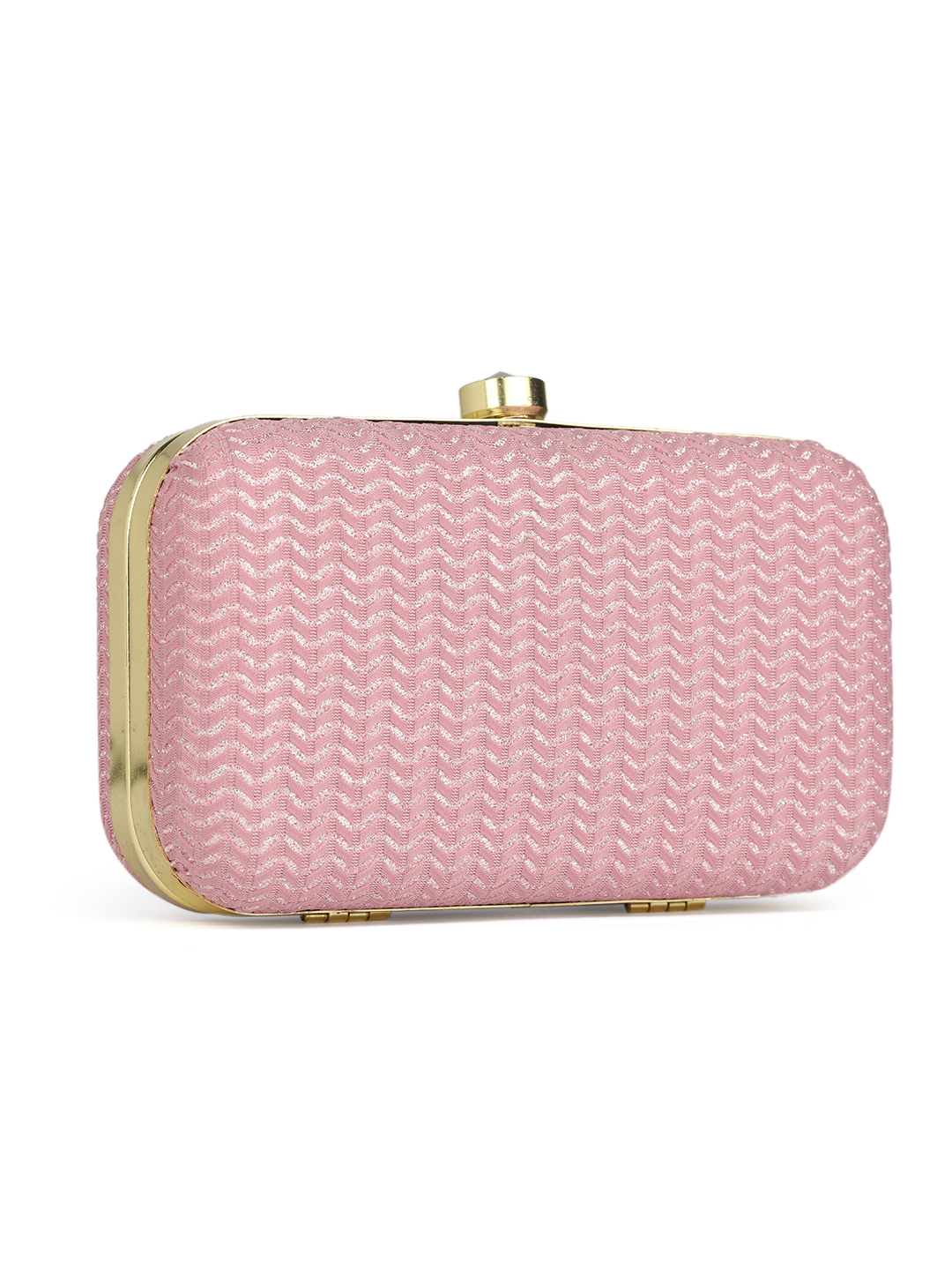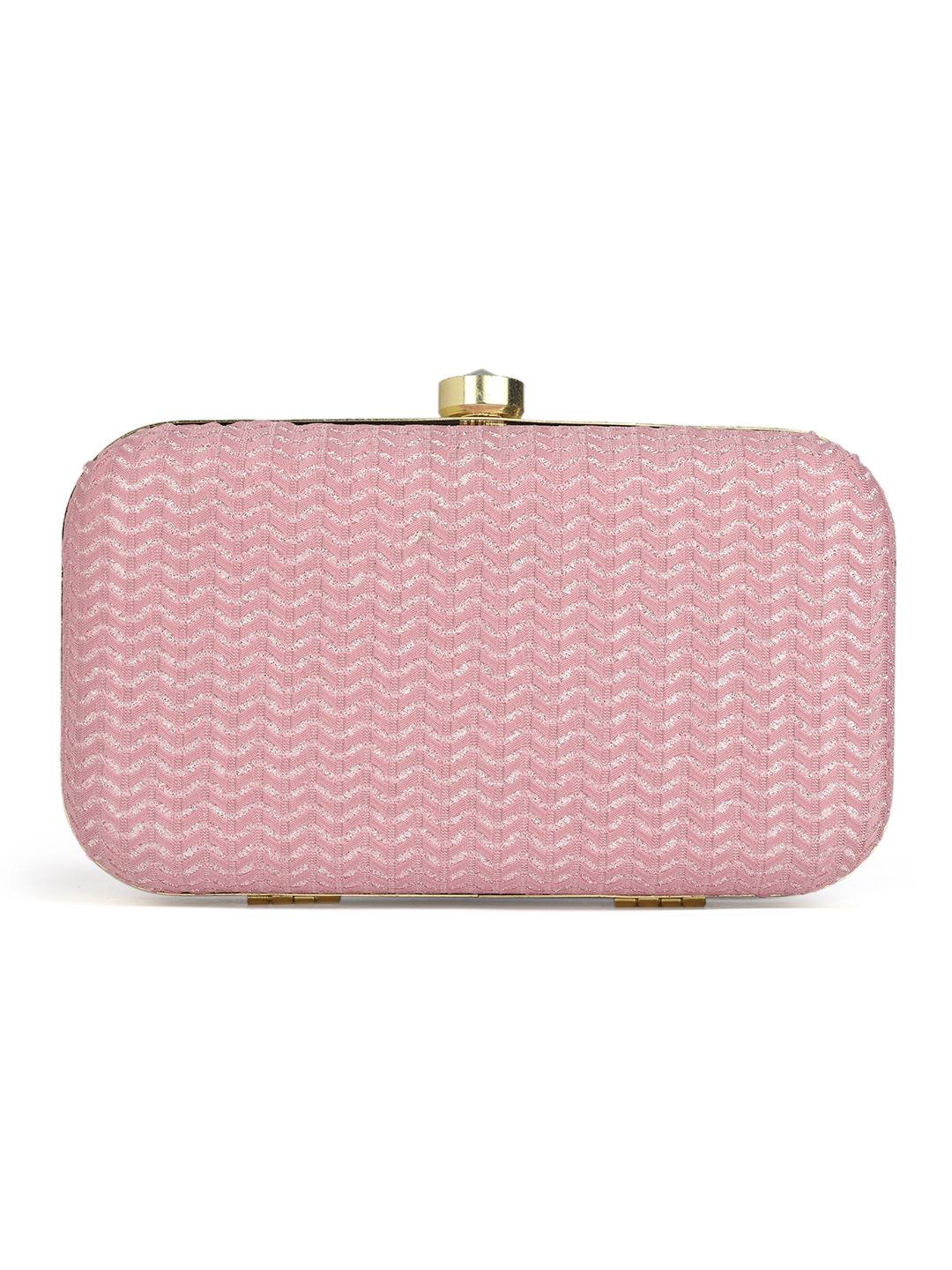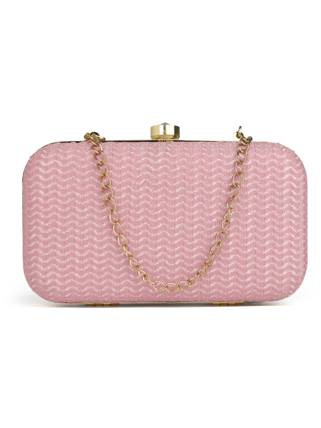 Pinkembroidered box clutches Has shoulder strap, 1 main compartment with twist closure