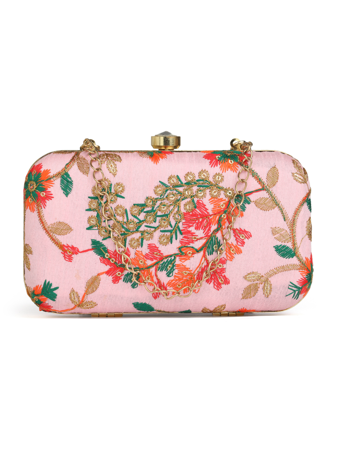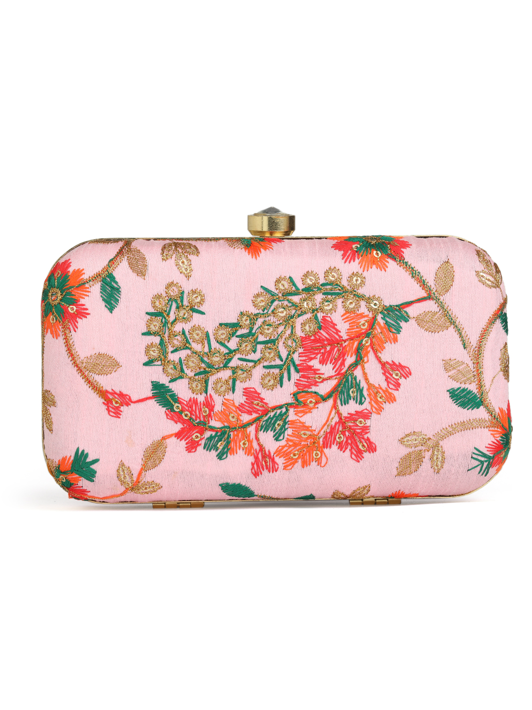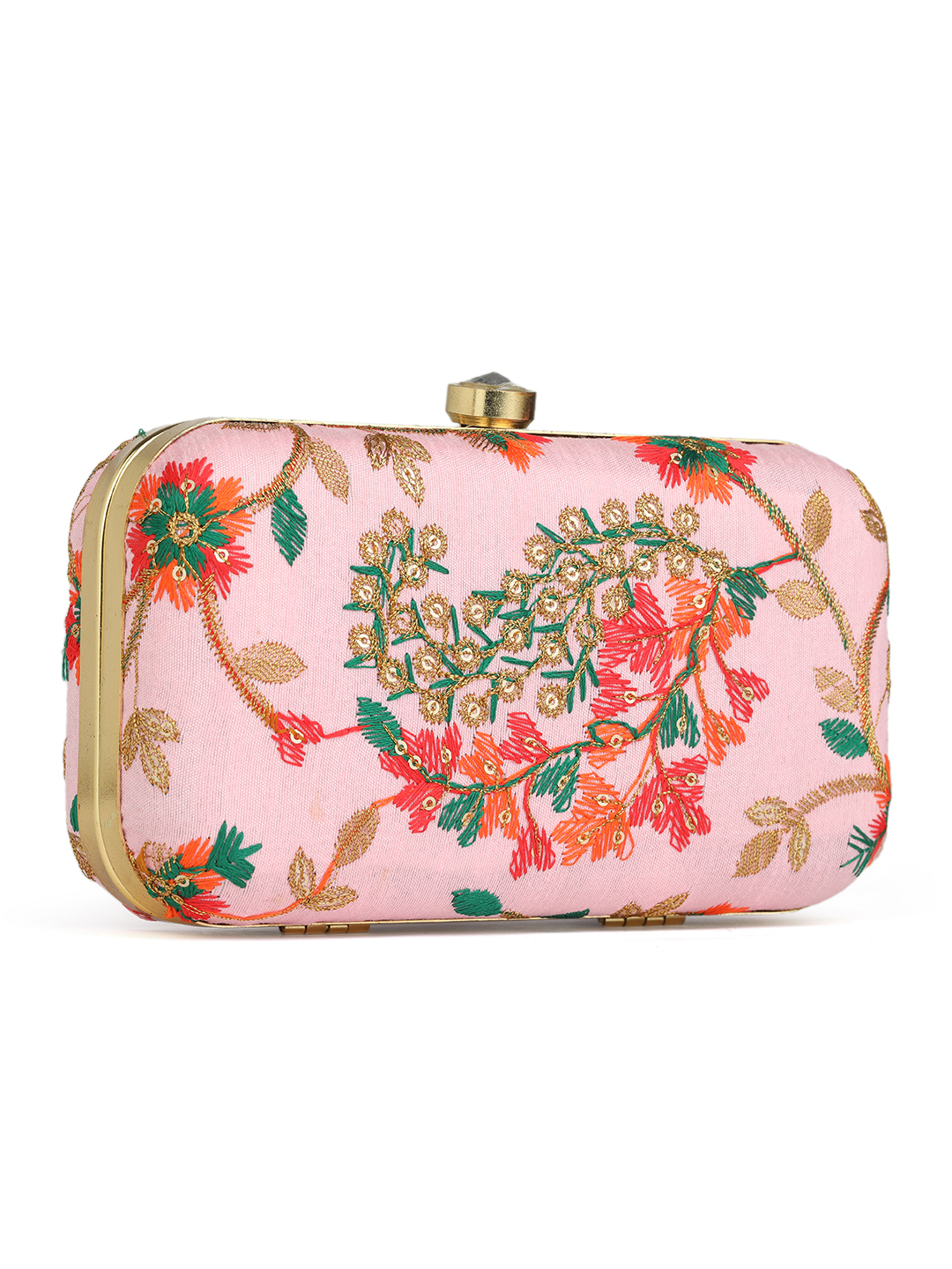 Home W_Bags Clutches Pink & Green Embroidered Box Clutches For Girls and womens